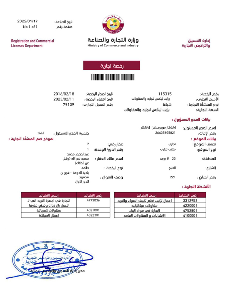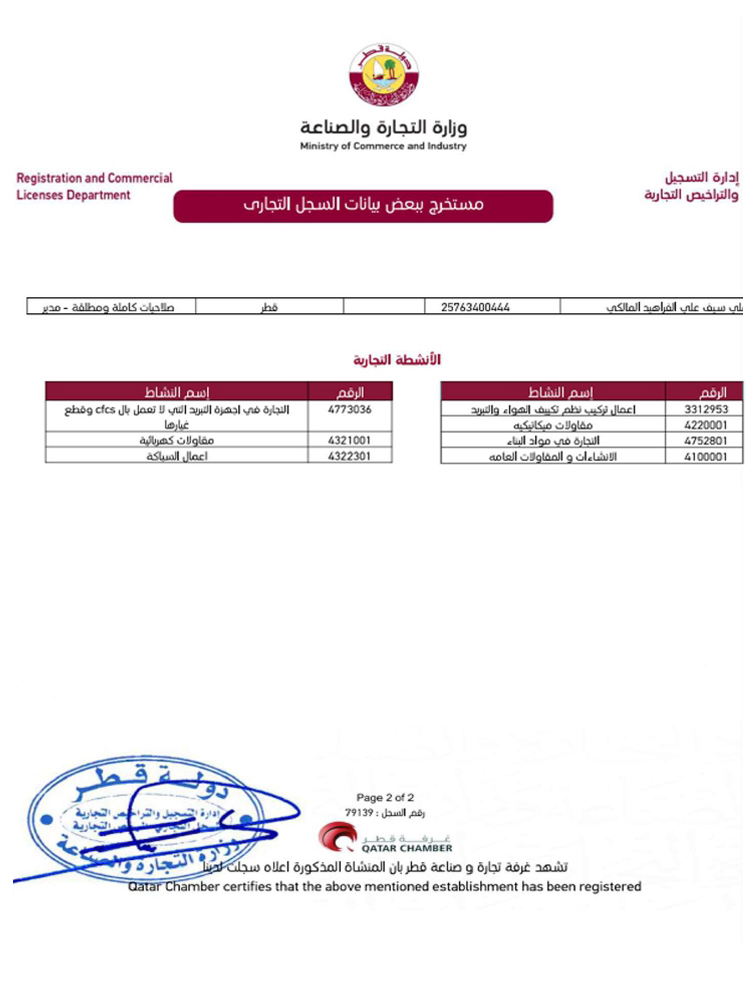 Our Business Activities are associated with Industrial, Commercial and Residential Projects in the State of Qatar. We have established in-house expertise in MEP, BMS, ELV and Data & Networking System.